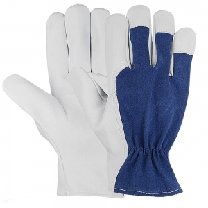 Additional: Full leather index and little finger Two fingers leather tip leather protectio at knuckle back blue cotton hemmed